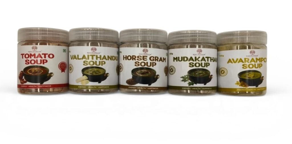 Mana Bhojanam brings back traditional South Indian wellness through six varieties of authentic soup powders made with natural herbs, spices, and ingredients. These soups support immunity, digestion, joint health, and overall nourishment. Tomato Soup Powder – A Comfort Classic Sun-dried tomatoes blended with spices for a tangy, antioxidant-rich soup perfect for all ages. Avarampoo Soup […]