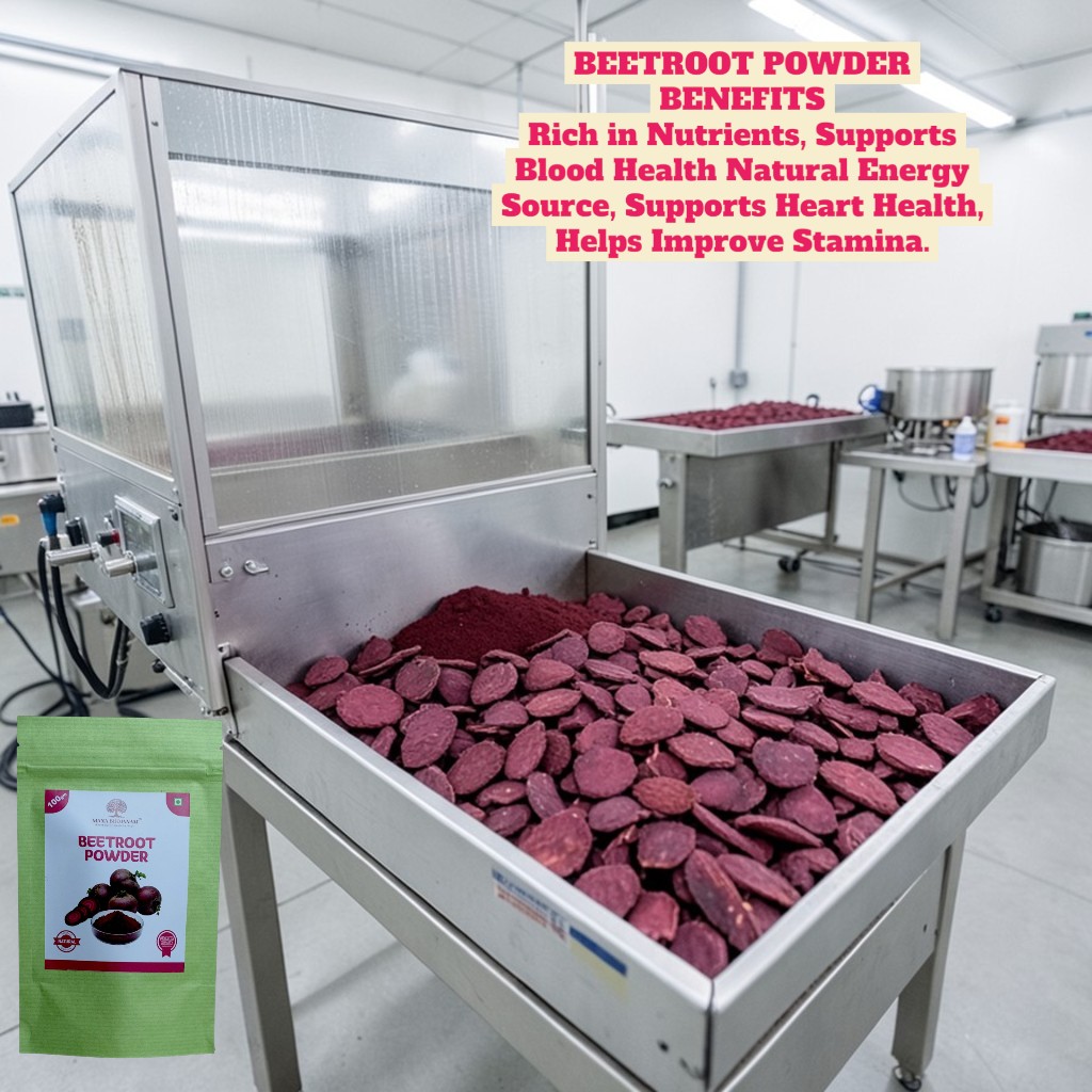Mana Bhojanam Beetroot Powder (Dry) is prepared from fresh, high-quality beetroot that is carefully cleaned, sliced, naturally dried, and finely powdered using traditional methods. This process helps retain natural colour, flavour, and nutritional goodness. Beetroot powder is rich in antioxidants and essential nutrients and is commonly used in health drinks, smoothies, porridges, and cooking. Free from preservatives, artificial colours, and additives, it offers pure and natural nutrition for all age groups.