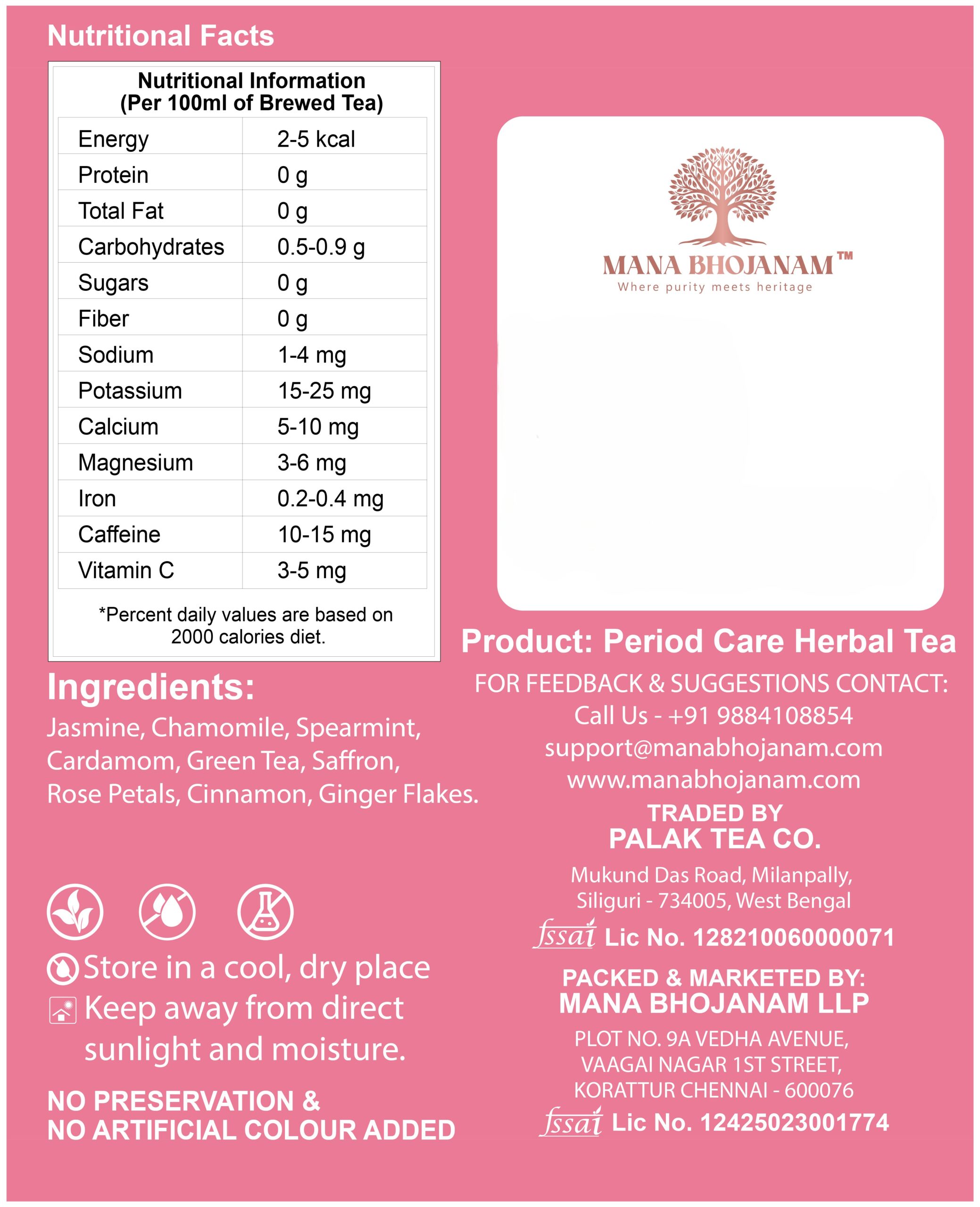 Mana Bhojanam Green Tea – Women Health Care is a thoughtfully prepared blend of green tea leaves and traditional herbal ingredients known to support women’s overall well-being. Designed for daily wellness, this tea helps refresh the body, calm the mind, and complement a balanced lifestyle. With a mild, pleasant taste and soothing aroma, it is suitable for regular consumption across different life stages. Free from artificial colours, flavours, and preservatives, this herbal green tea supports natural wellness when paired with healthy food habits and self-care routines.