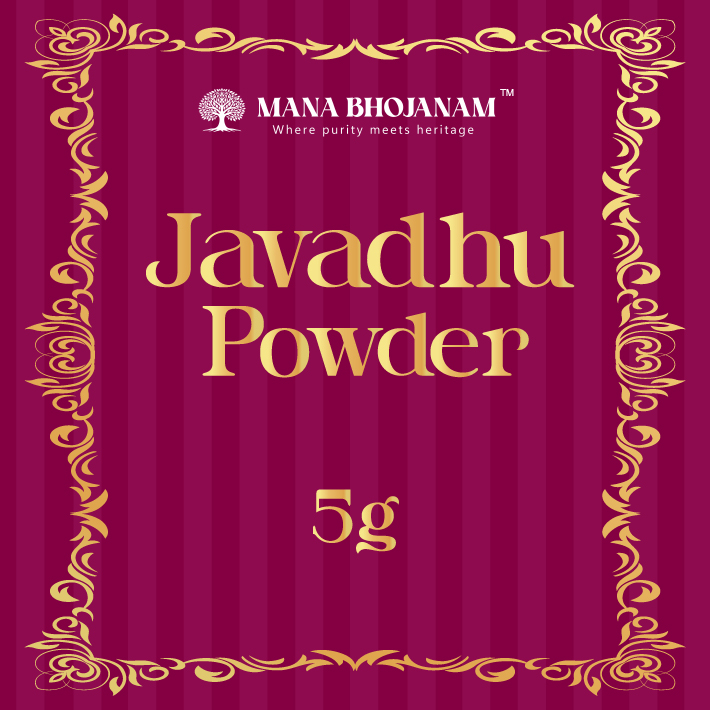 Mana Bhojanam Javadhu Powder is a traditional fragrant powder prepared using time-honoured methods. Known for its mild, earthy, and pleasant aroma, javadhu has been used for generations in spiritual practices, pooja rituals, and as a natural body fragrance. Finely powdered and naturally aromatic, this javadhu powder is free from synthetic perfumes and harsh chemicals. It reflects purity, tradition, and cultural heritage, making it suitable for daily devotional use as well as traditional personal care.