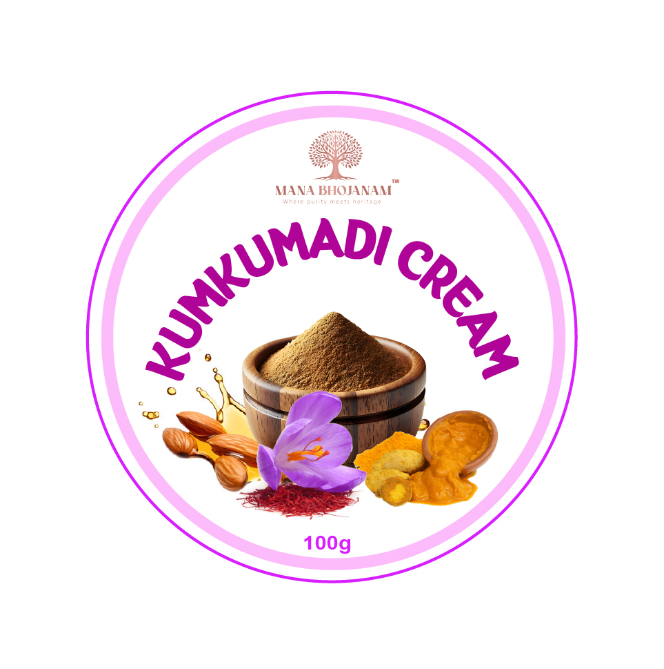 | Mana Bhojanam Kumkumadi Cream is inspired by the traditional Kumkumadi formulation, known for its skin-enhancing and nourishing properties. Carefully blended with herbal ingredients, this cream helps moisturise the skin, improve natural radiance, and support an even-looking complexion. Lightweight and non-greasy, it absorbs easily into the skin and is suitable for regular use. Ideal for dull, dry, or uneven skin, this cream supports healthy-looking skin with consistent use. Free from harsh chemicals, it reflects Mana Bhojanam’s commitment to natural and gentle personal care. |