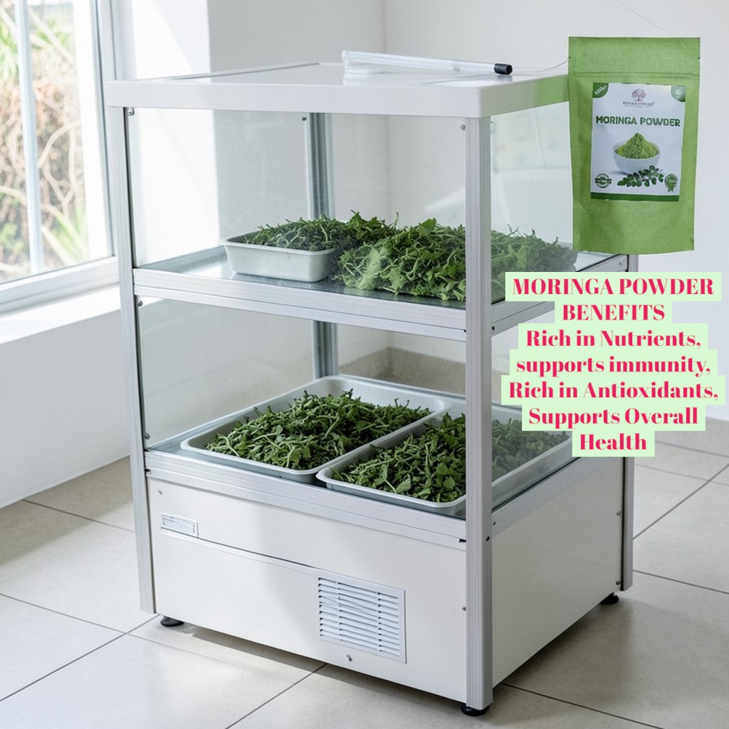 Pure Dry Moringa Powder made from fresh drumstick leaves, naturally shade-dried and finely ground. Rich in nutrients and ideal for daily wellness.