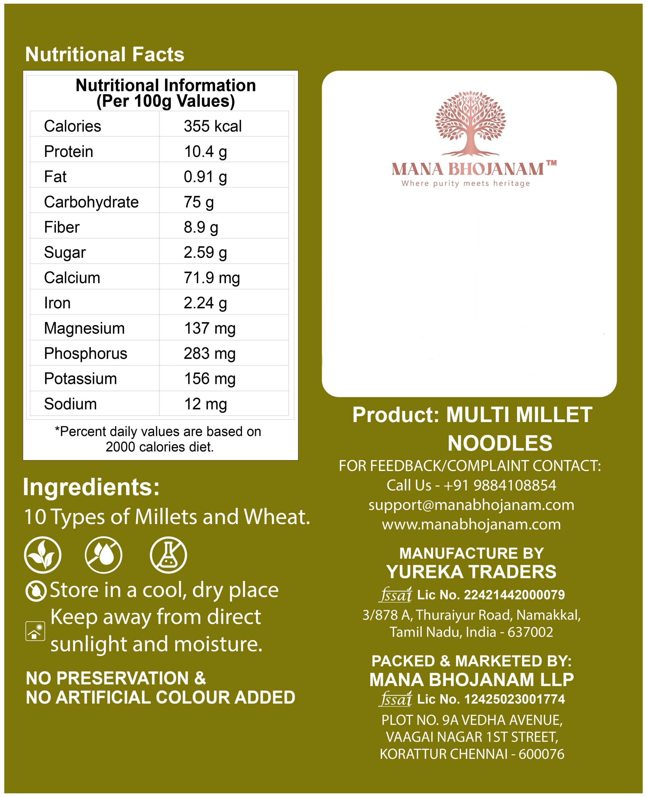 Mana Bhojanam Multi Millet Noodles are crafted from a blend of nutritious millets to offer a healthier alternative to refined flour noodles. Rich in fibre and essential nutrients, these noodles support digestion and provide sustained energy without compromising on taste. Quick and easy to cook, multi millet noodles are perfect for busy families, kids’ meals, and healthy lunches. Prepared without maida, preservatives, or artificial colours, they reflect Mana Bhojanam’s commitment to wholesome, natural food choices.