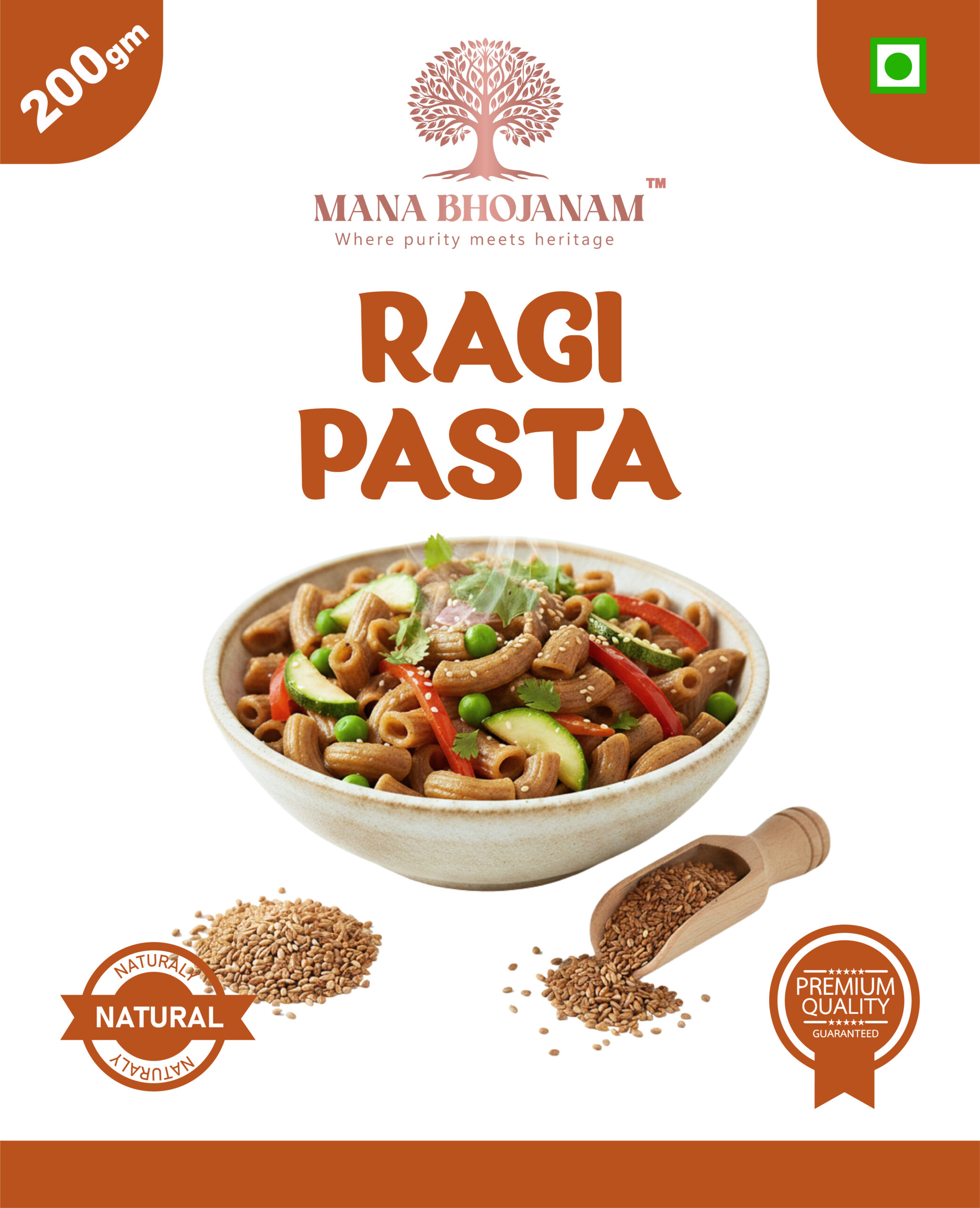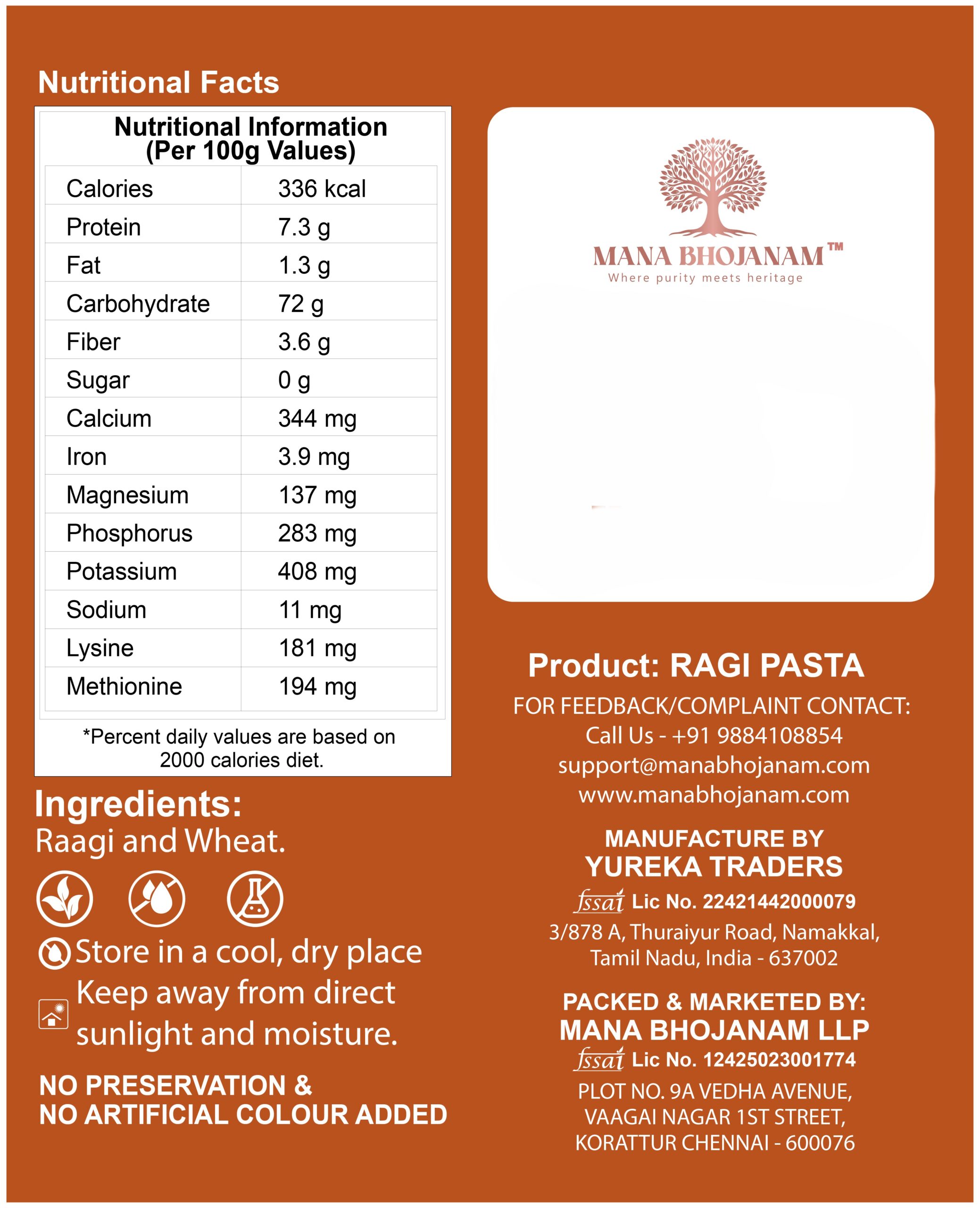Mana Bhojanam Ragi Pasta is crafted from raagi (finger millet), known for its high calcium, iron, and fibre content. This pasta offers a nutritious alternative to refined flour pasta while retaining good taste and texture. Easy to cook and versatile, raagi pasta can be prepared in various styles—from simple masala pasta to creamy or vegetable-based recipes. Prepared without maida, preservatives, or artificial colours, it supports bone health, digestion, and sustained energy.