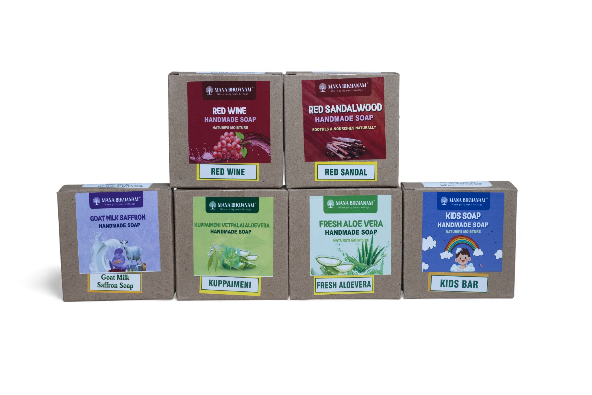 Discover the essence of natural skincare with the Mana Signature Handmade Soap Combo, a thoughtfully curated collection of six premium, cold-processed herbal soaps. Each soap is crafted using traditional methods with rich botanical extracts, pure essential oils, nourishing butters and skin-loving natural ingredients.