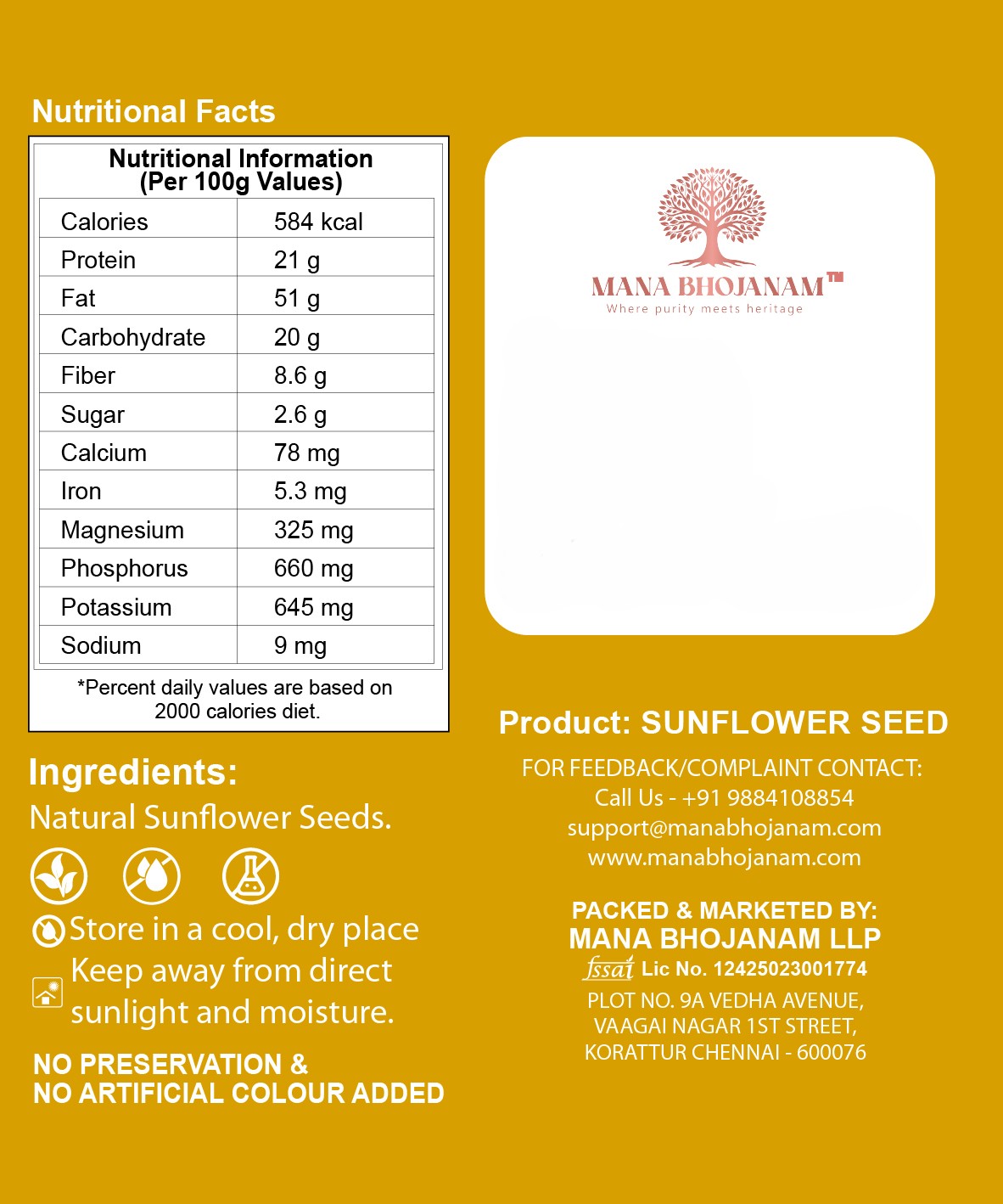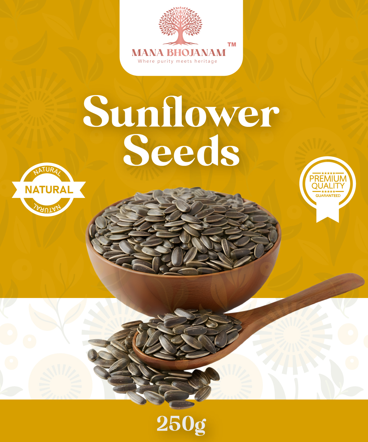 Mana Bhojanam Sunflower Seeds are carefully selected, cleaned, and hygienically packed to preserve their natural flavour and nutritional value. These seeds are rich in plant-based nutrients and are widely used as a healthy snack and ingredient in everyday meals. Sunflower seeds can be consumed raw, lightly roasted, or added to salads, smoothies, baking, and cooking. Free from preservatives and additives, they offer pure, natural goodness for a balanced diet.